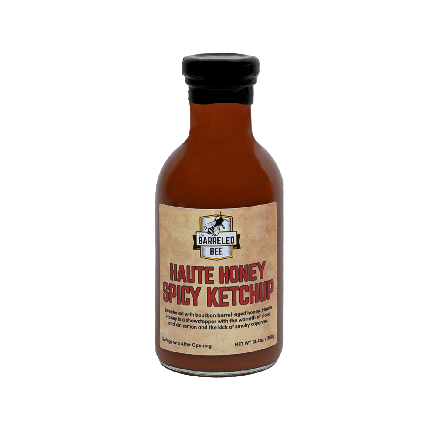 This ketchup kicked the flavor up a notch by elevating a classic recipe with some balanced heat. Tangy tomato, savory onion, garlic, and spicy cayenne pepper. with the underlying, subtle sweetness of barrel-aged honey, this ketchup is a beautiful lattice of flavor that changes with every bite. The heat from the cayenne comes in mid-palate and lingers but doesn't overwhelm. Haute Honey is great for dipping fries, smothering on meatloaf, and your morning eggs.