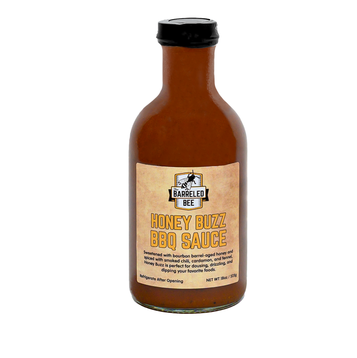 Don't let the name fool you, Honey Buzz is not just for BBQ. A great all-around sauce for meat, tofu, and vegetables, the savory, smoky flavor from the cardamon, cold brew coffee, and cayenne give a layered complex tasting experience. Sweetened with honey that was aged in bourbon barrels from local distilleries, gives it that hint of bourbon, caramel without being overly sweet. The tangy vinegar and citrus notes bring out the roasted tomato taste. Honey buzz is a sweet spicy ingredient for a bloody mary or if you want to add depth to your mac and cheese.