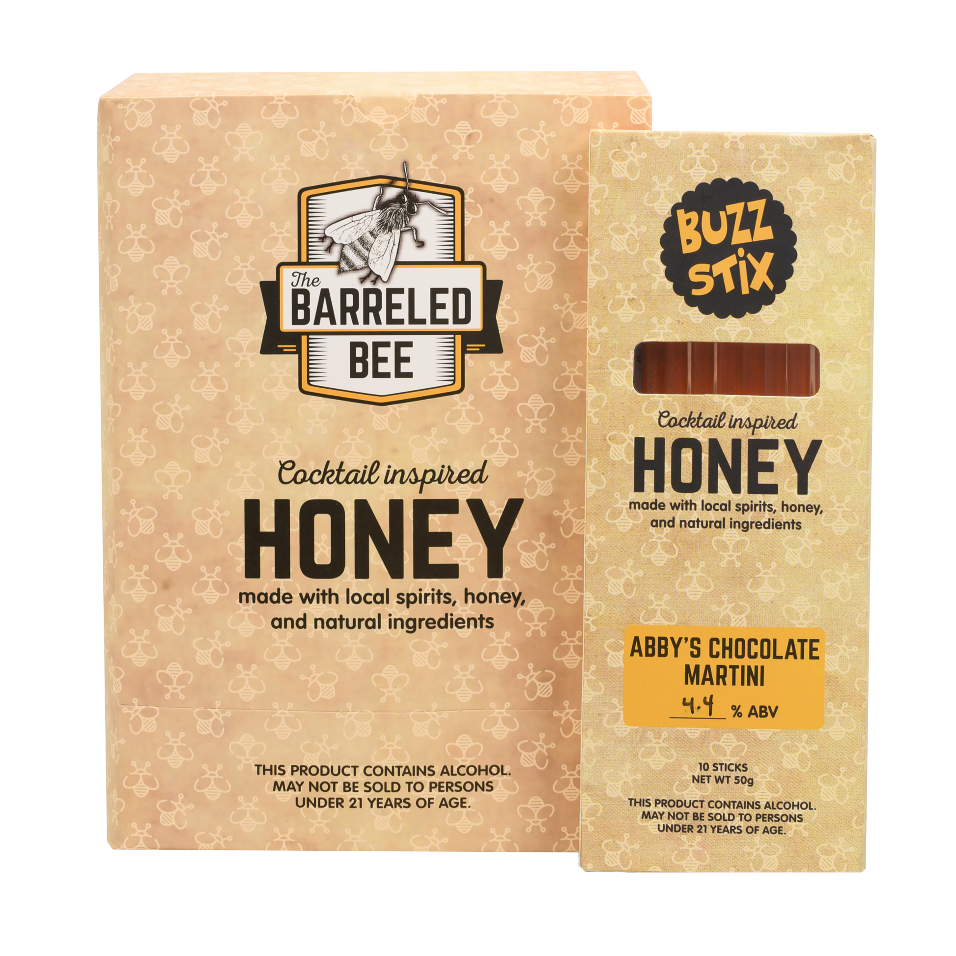 Chocolate with a hint of coffee make the perfect chocolate martini and with New Deal's Mudd Puddle Bitter Chocolate Vodka and their Coffee Liqueur you have the right combination. The Barreled Bee loves working with Tom and the crew at New Deal and is constantly inspired by the creative cocktails they create. The depth of flavor these two bring to the buckwheat and coriander honey blend, gives big cocktail flavor in a tiny package. Named after the amazing Abby, the tasting room manager for Freeland Spirits when Lee was their distiller. She and Abby worked together and Lee told her she would name a flavor after her and to pick a cocktail. A fun challenge Lee readily accepted and honored. If you know Abby and run into her, tell her how much you love her Buzz Stix.